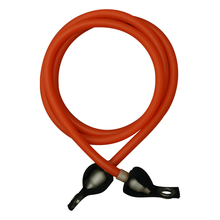 Latex-Sprungseil für Euroviva® Bungee Trampolin Anlagen. Einfachschlauch fertig konfektioniert mit Textilendstücken und Ösen. Seilmaß außen 13 mm, Farbe: Orange Gewicht: ca. 0.20 kg